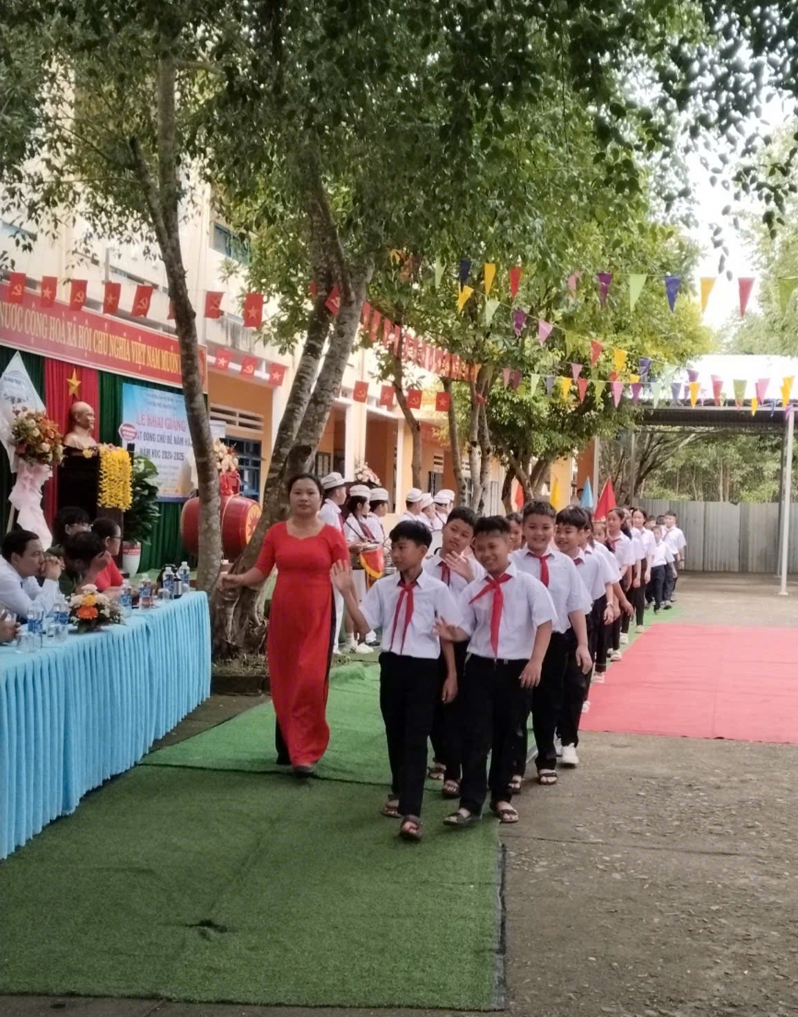 Cùng quý thầy giáo, cô giáo và 482 học sinh của trường đã có mặt đông đủ trong buổi lễ trang trọng này.